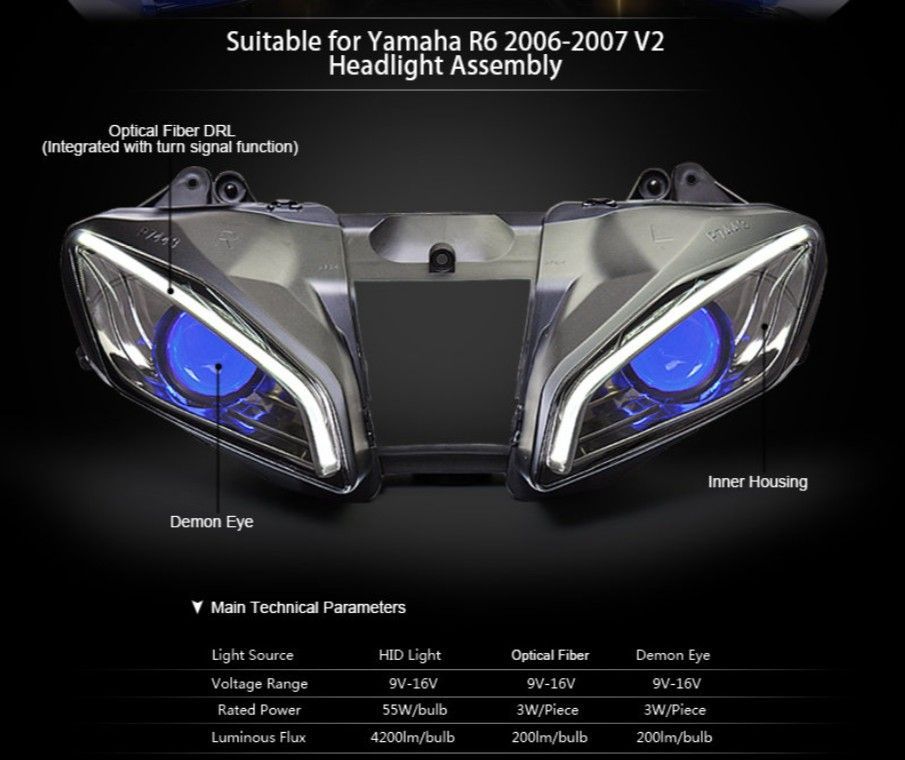 Для Yamaha R6 Светодиодная фара в сборе 2006 2007