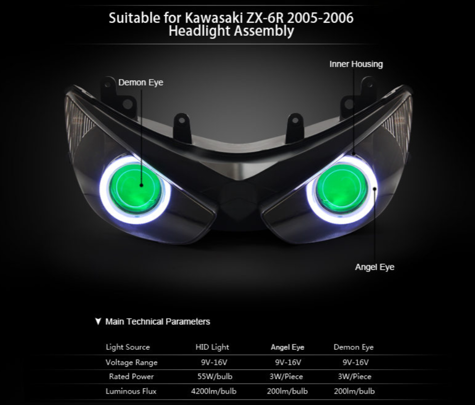 Для фар Kawasaki Ninja ZX6R 2005 2006