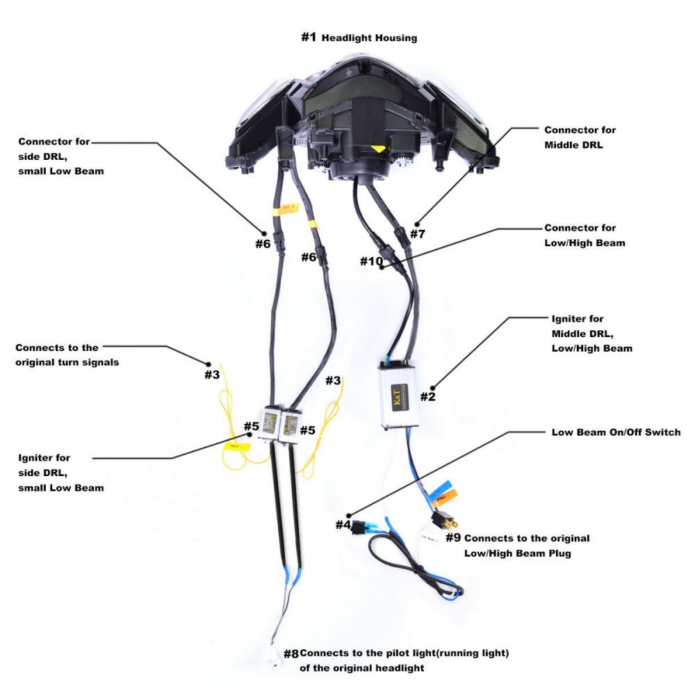 • 2: Ближний свет: переключатель включения / выключения ближнего света, установленный на жгуте реле KT, его можно использовать для управления включением и выключением ближнего света.