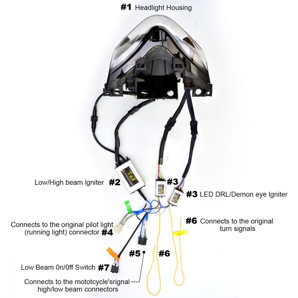 2: Ближний свет и светодиодный глаз демона: использование оригинального переключателя дальнего и ближнего света для управления им.