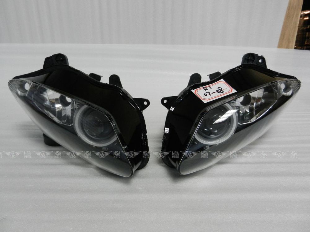 ㋛ Фара на мотоцикл Yamaha YZF R1 2007-2008 является очень качественным и более бюджетным аналогом оригинальной оптики мотоцикла OEM: 4C8-84303-51-00, 4C8-84303-40-00.