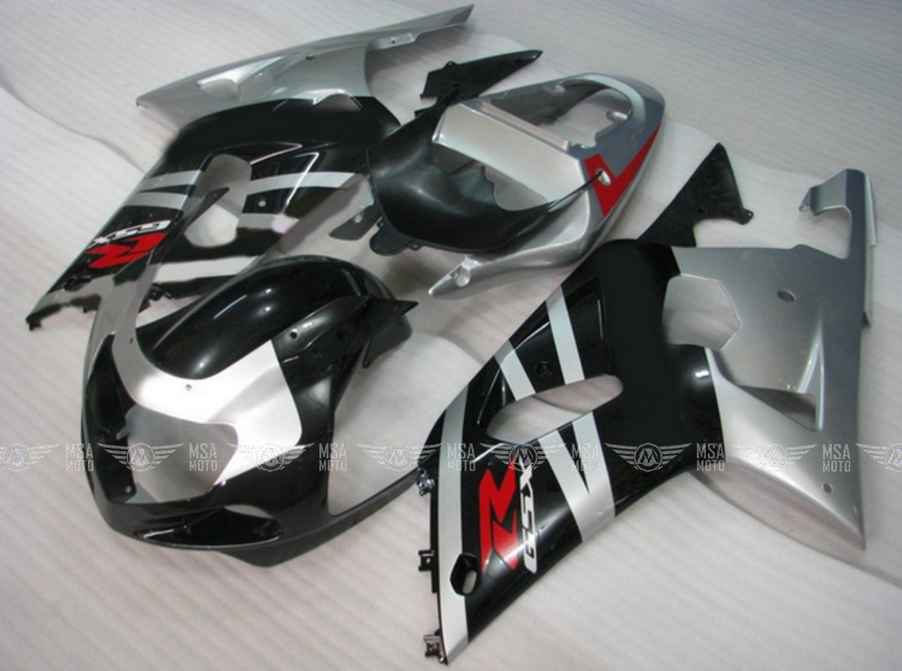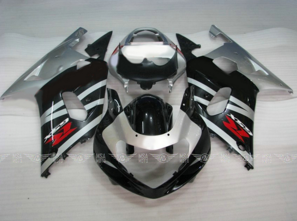 • ㋛ В данный комплект пластика для мотоцикла Suzuki GSXR600/750 2001-2003 входят абсолютно все детали пластиковых элементов облицовки мотоцикла: передний пластик, боковой пластик, переднее крыло, пластик хвоста, накладки воздуховодов, внутренний пластик  обтекателя. Точную комплектацию уточняйте, пожалуйста, у менеджеров магазина.