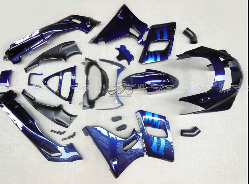 • ㋛ В данный комплект пластика для мотоцикла Kawasaki ZZR400/600 1993-2007 входят абсолютно все детали пластиковых элементов облицовки мотоцикла: передний пластик, боковой пластик, переднее крыло, пластик хвоста, накладки воздуховодов, внутренний пластик  обтекателя. Точную комплектацию уточняйте, пожалуйста, у менеджеров магазина.