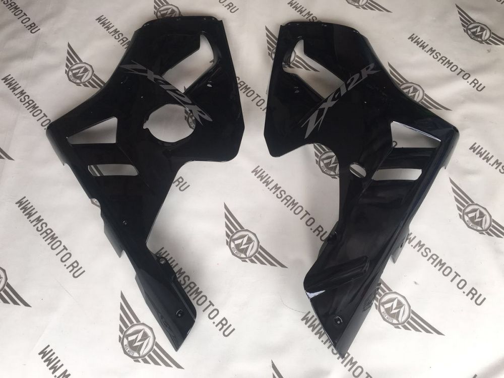• ㋛ В данный комплект пластика для мотоцикла Kawasaki Ninja ZX-12R 2000-2001  входят абсолютно все детали пластиковых элементов облицовки мотоцикла, которые указаны в первом товаре модельного ряда: передний пластик, боковой пластик, переднее крыло, пластик хвоста, накладки воздуховодов, внутренний пластик  обтекателя. Точную комплектацию уточняйте, пожалуйста, у менеджеров магазина.