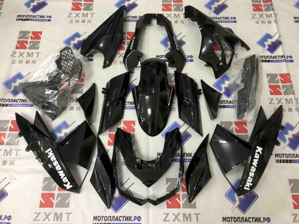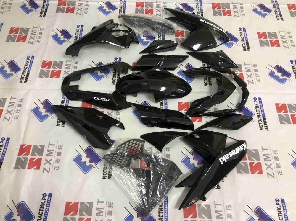 • ㋛ В данный комплект пластика для мотоцикла Kawasaki Z1000 2010-2013 входят абсолютно все детали пластиковых элементов облицовки мотоцикла: передний пластик, боковой пластик, переднее крыло, пластик хвоста, накладки воздуховодов, внутренний пластик  обтекателя. Точную комплектацию уточняйте, пожалуйста, у менеджеров магазина.