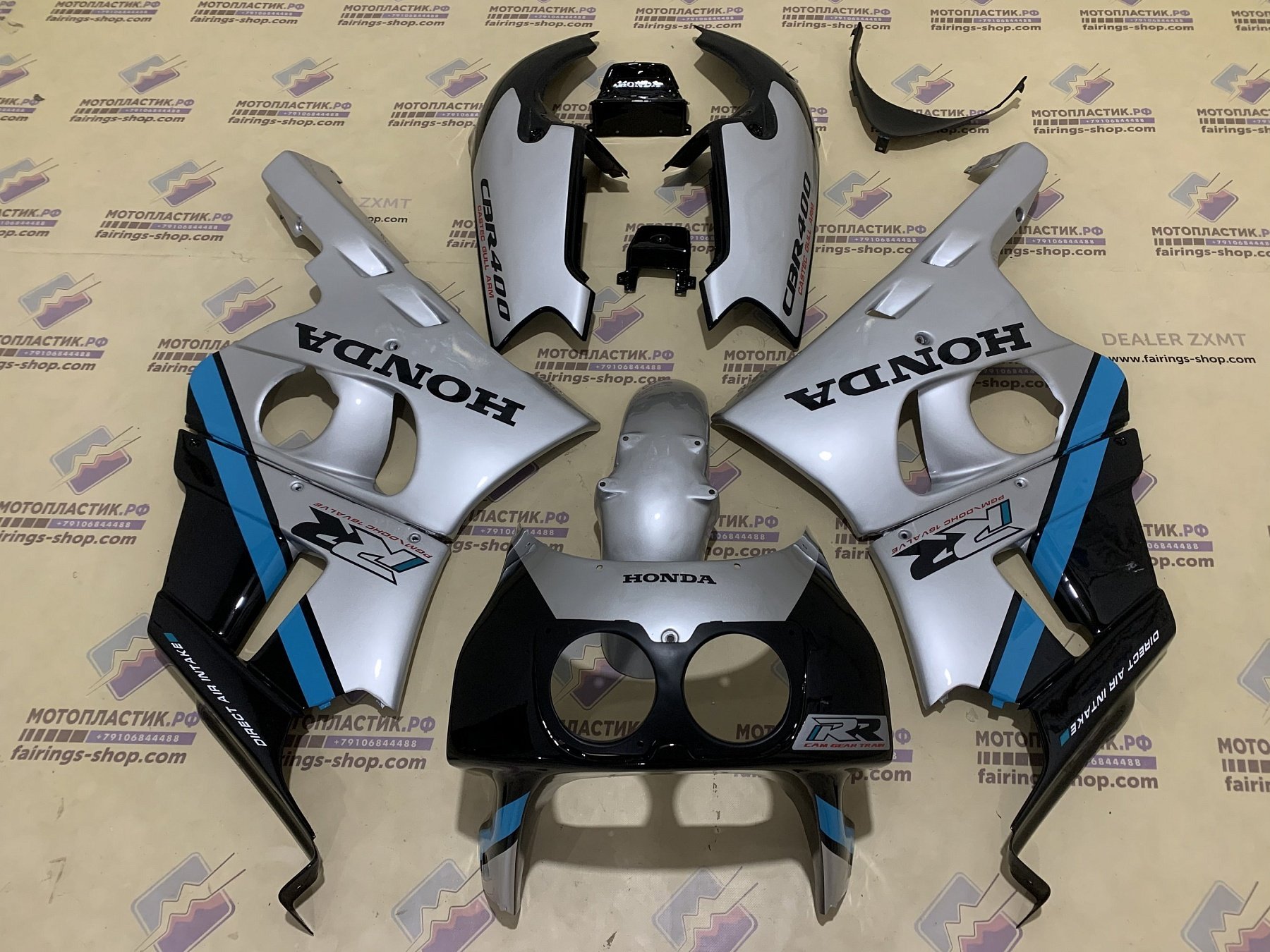 • ㋛ В данный комплект пластика для мотоцикла Honda CBR400RR NC29 1990-1999 входят абсолютно все детали пластиковых элементов облицовки мотоцикла, которые указаны в первом товаре модельного ряда: передний пластик, боковой пластик, переднее крыло, пластик хвоста, накладки воздуховодов, внутренний пластик  обтекателя. Точную комплектацию уточняйте, пожалуйста, у менеджеров магазина.