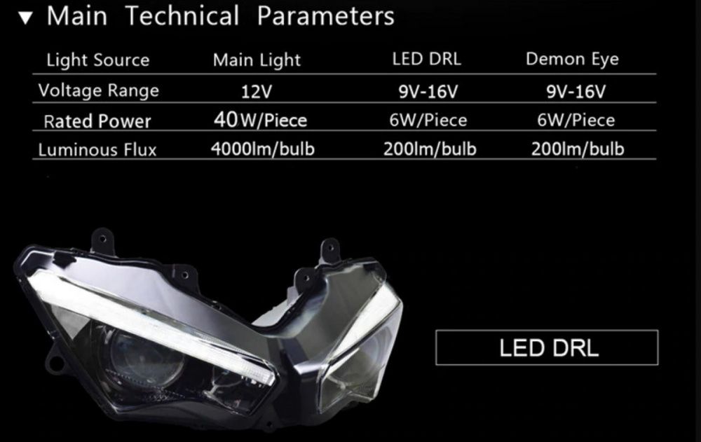 •  Для Kawasaki Ninja 400/250 2018-2020 Полная сборка светодиодных фар
