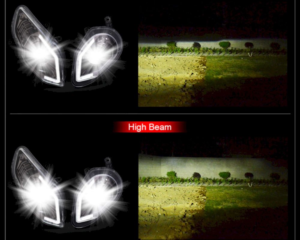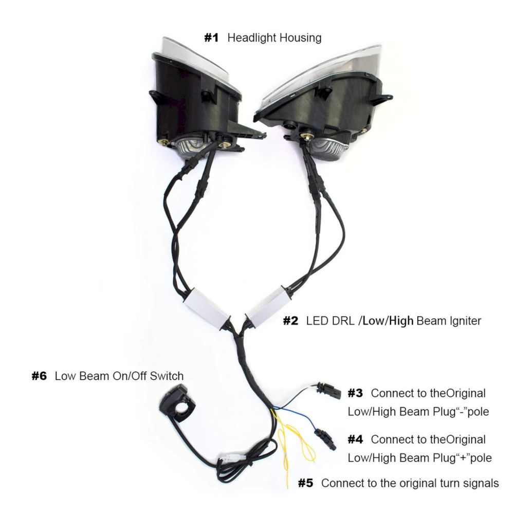 • 1: Ближний свет и светодиодный глаз демона: переключатель включения / выключения ближнего света, установленный на жгуте реле KT, его можно использовать для управления включением и выключением ближнего света и глаза демона.
